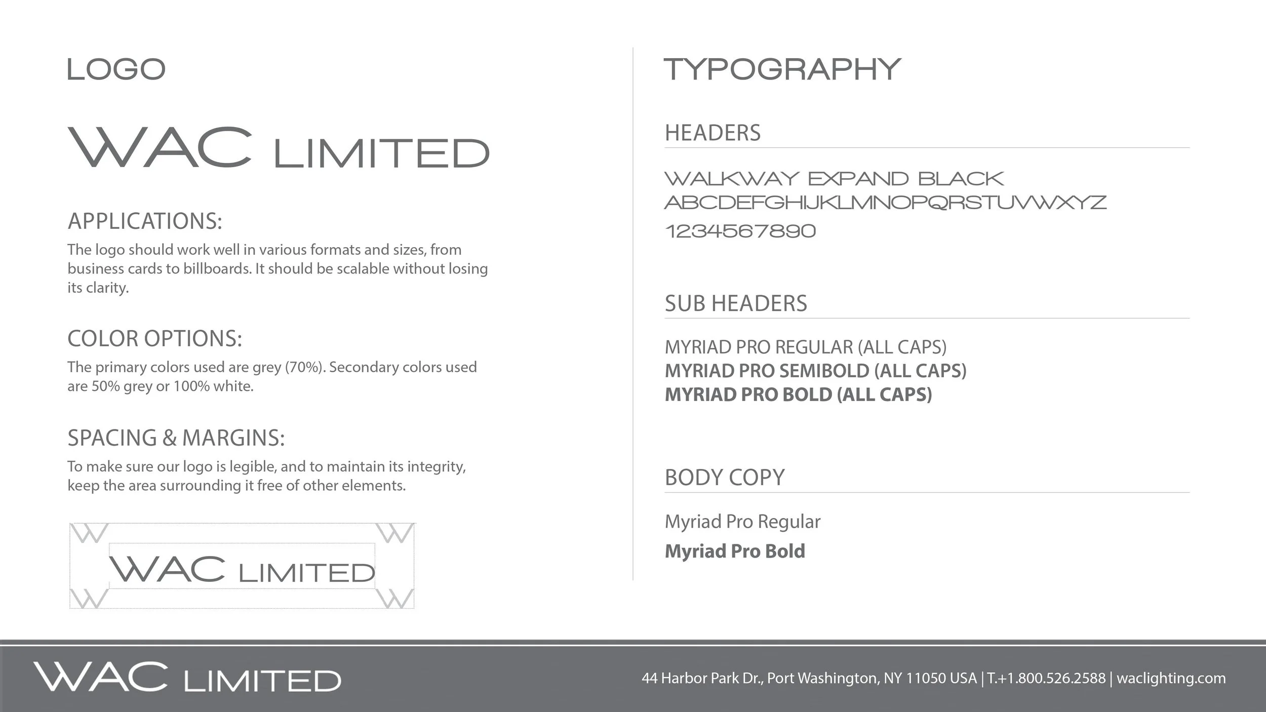 Developing a detailed and cohesive set of brand guidelines to ensure consistent representation of WAC Lighting's brand across all touchpoints. These guidelines covered all aspects of the brand, from visual elements to tone of voice, providing a clear and unified direction for all branding efforts.